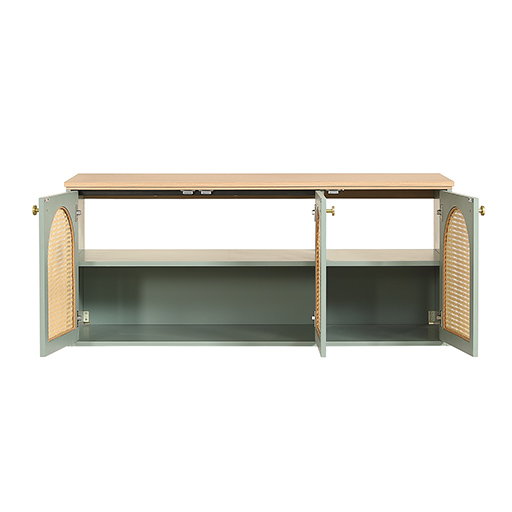 The ALI range blends traditional woven cane with contemporary lacquered fronts, creating a distinctive signature where crafted texture meets clean, modern lines. The dialogue between artisanal material and refined geometry gives the collection its quiet, balanced identity.