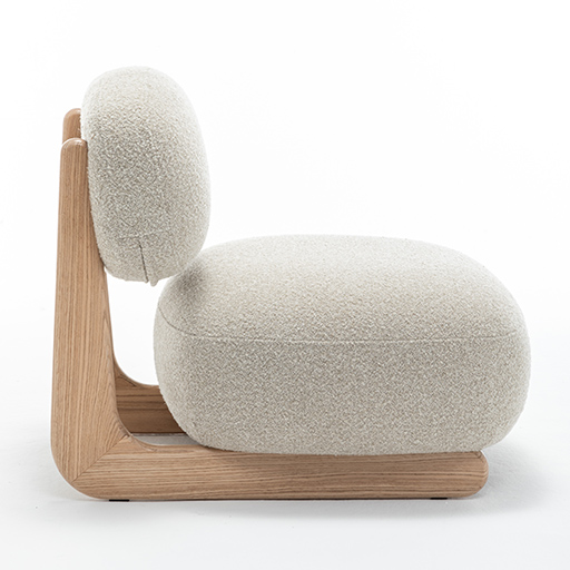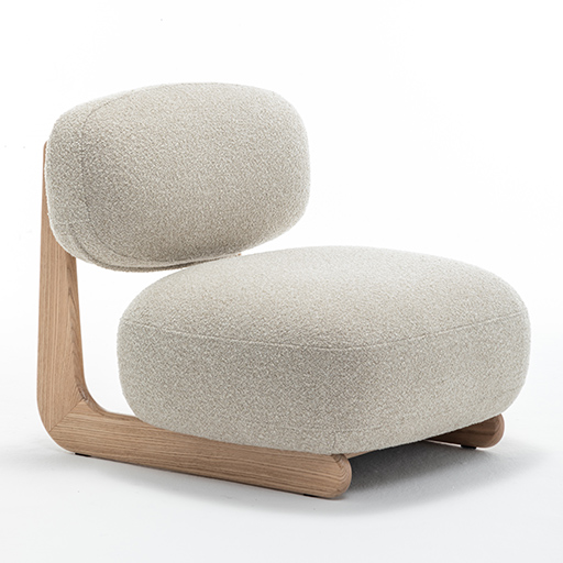 Le fauteuil BLISS affirme une présence douce à travers des volumes pleins et un dessin tout en équilibre. Le dossier arrondi, légèrement dissocié de l’assise, semble flotter au-dessus de celle-ci et crée un jeu de lignes subtil. L’assise généreuse, travaillée en superposition, renforce cette sensation de confort profond tout en dessinant une silhouette basse et accueillante.